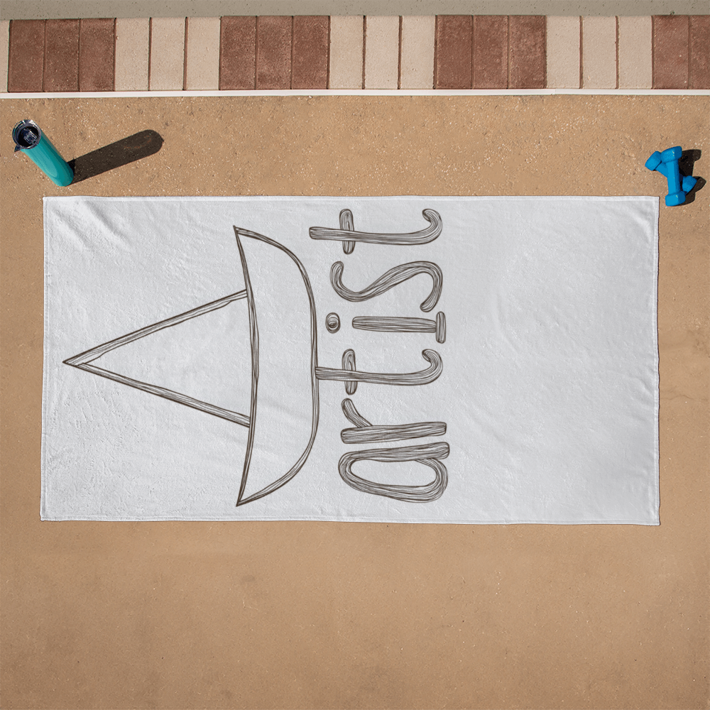 This minimalist line-art towel design turns the word artist into a sailing vessel — as if creativity itself is adrift on an ocean of ideas.