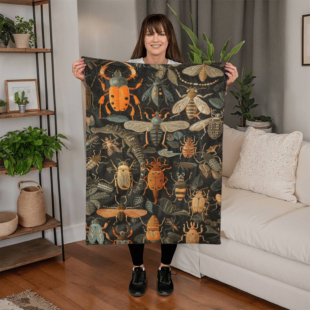 Beetles all over the place, but don't worry, they won't attack you, instead you have a beautiful design on a blanket that connects you with nature.