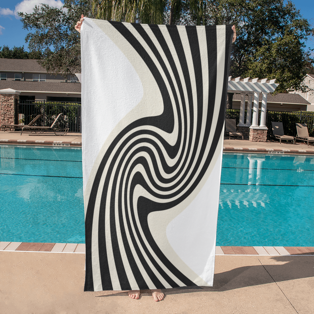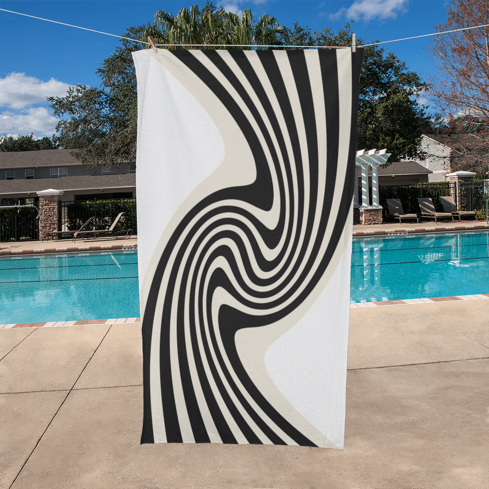 This hypnotic black-and-white vortex bends space, time, and expectations. A perfect statement piece for design lovers, minimalists, or anyone who likes their beach vibes a little trippy