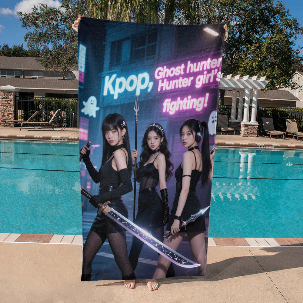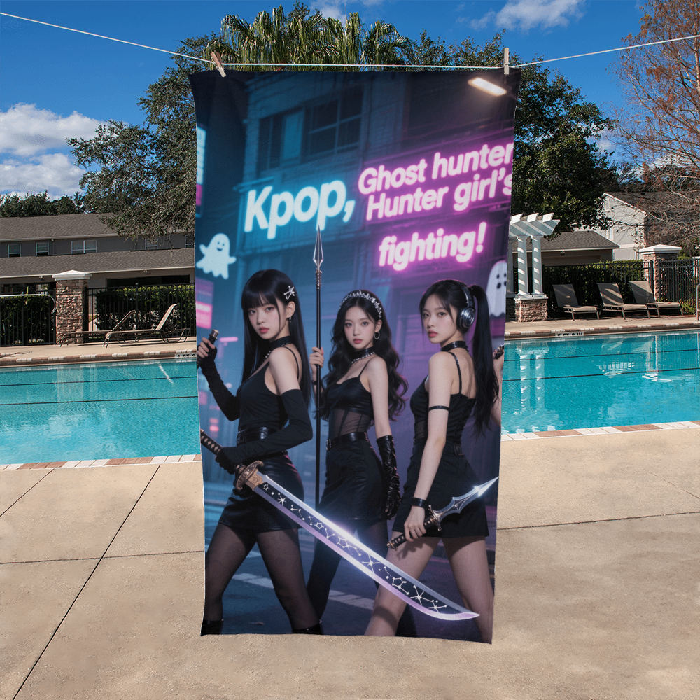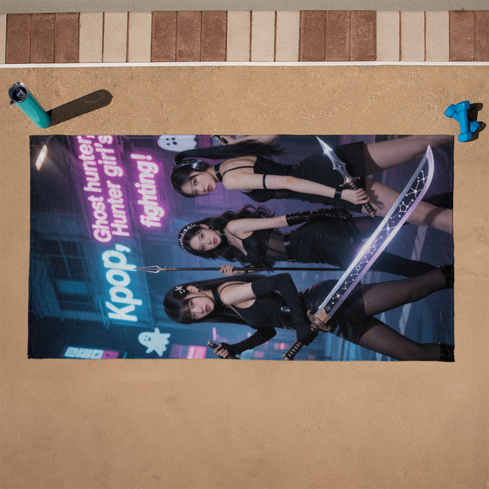 Armed with swords, sass, and supernatural vibes, this K-pop girl squad is ready to slay ghosts and stages alike. Drenched in neon lights and futuristic style, this artwork blends idol energy with urban fantasy cool.