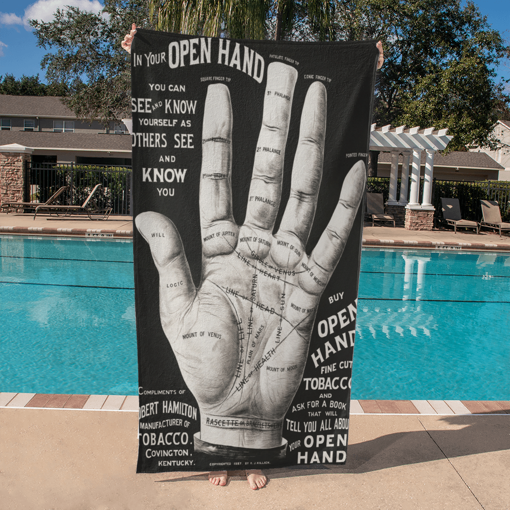 This bold towel design is based on an 1887 palmistry chart