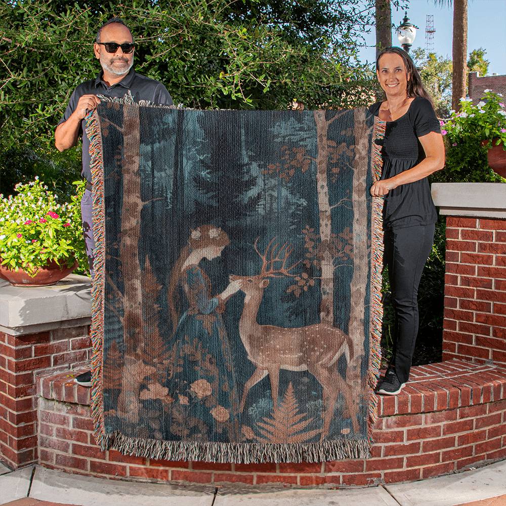 Experience the majesty of nature with Oh deer! This stunning picture features a woman and a deer in the serene beauty of the woods. Let it inspire you and bring a sense of peace to your home. Perfect for any nature lover or art enthusiast.