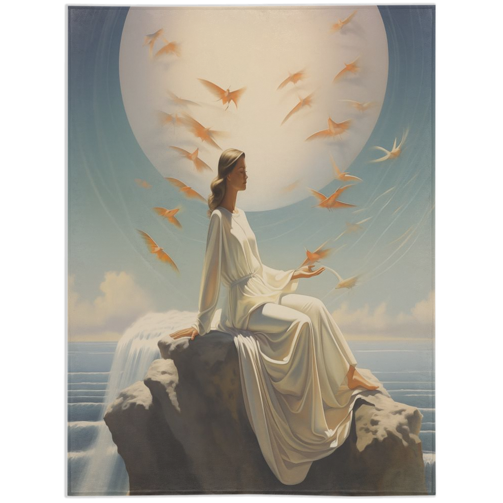 Experience the feeling of a fresh breeze, warm air, and the soothing sound of the sea and water hitting the rocks. The rhythmic crowing of birds flying in the sky adds to the peaceful atmosphere. With this ultra-soft blanket, you can transport yourself to a relaxing vacation without ever leaving your home.