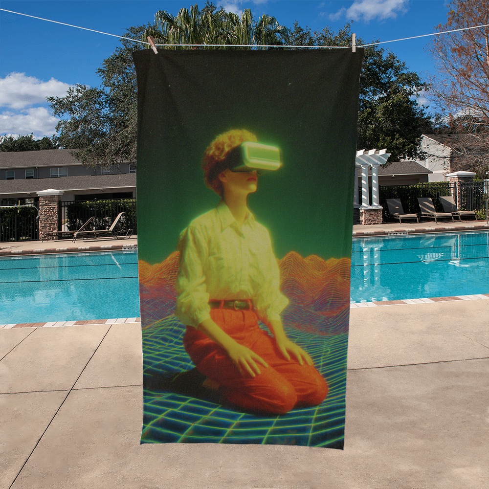 A retro woman lost in VR — back when the internet was just neon dreams. Grainy textures, synthwave vibes, and gridlines that scream mainframe aesthetic